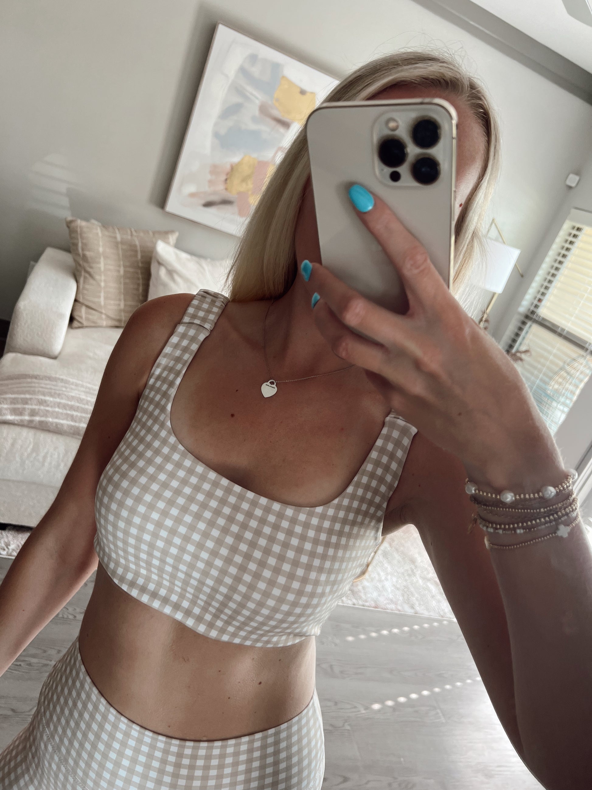 Beige Gingham Sports Bra