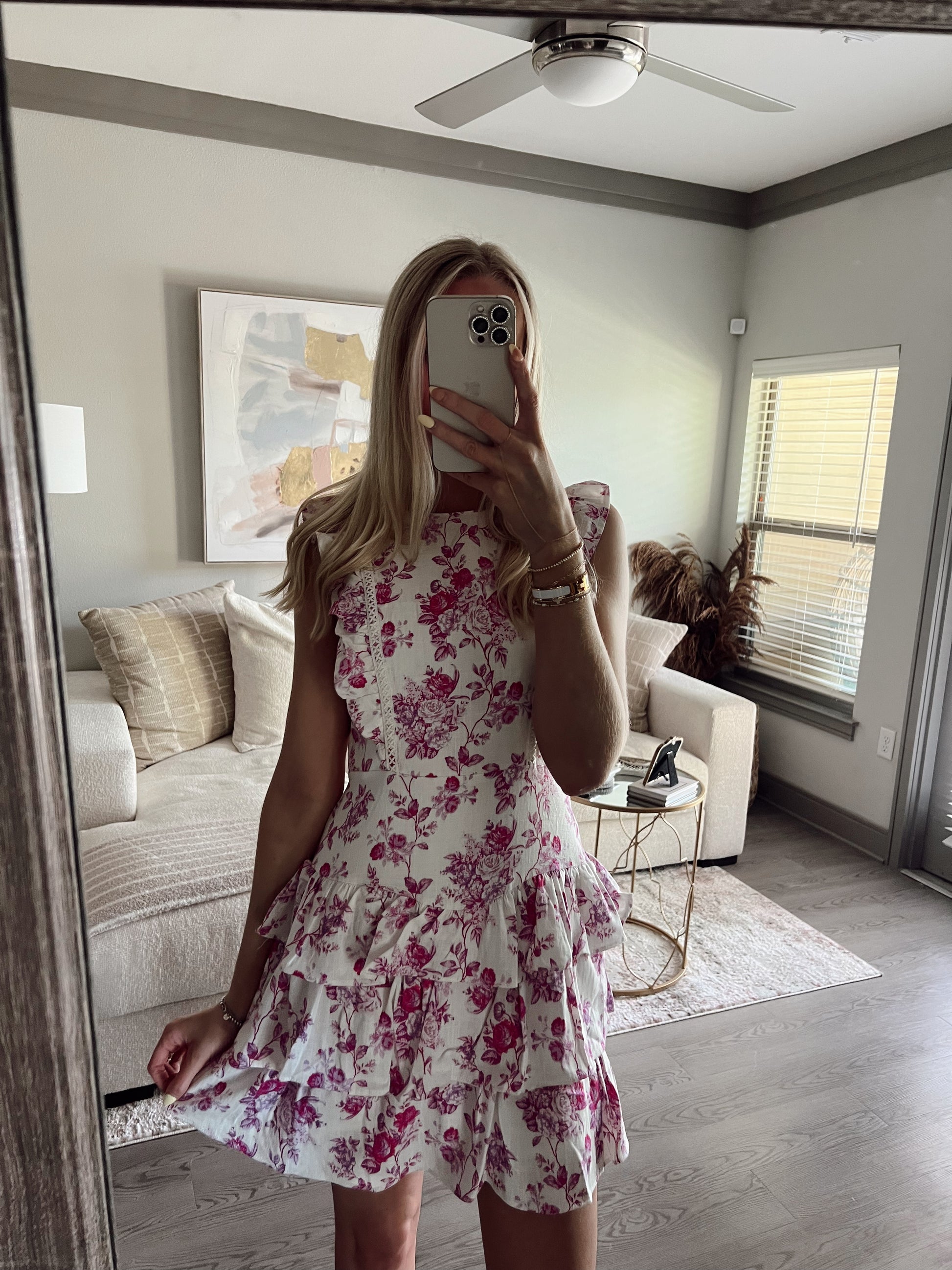 Details: back zipper, ruffled skirt and sleeves, lace detail on top