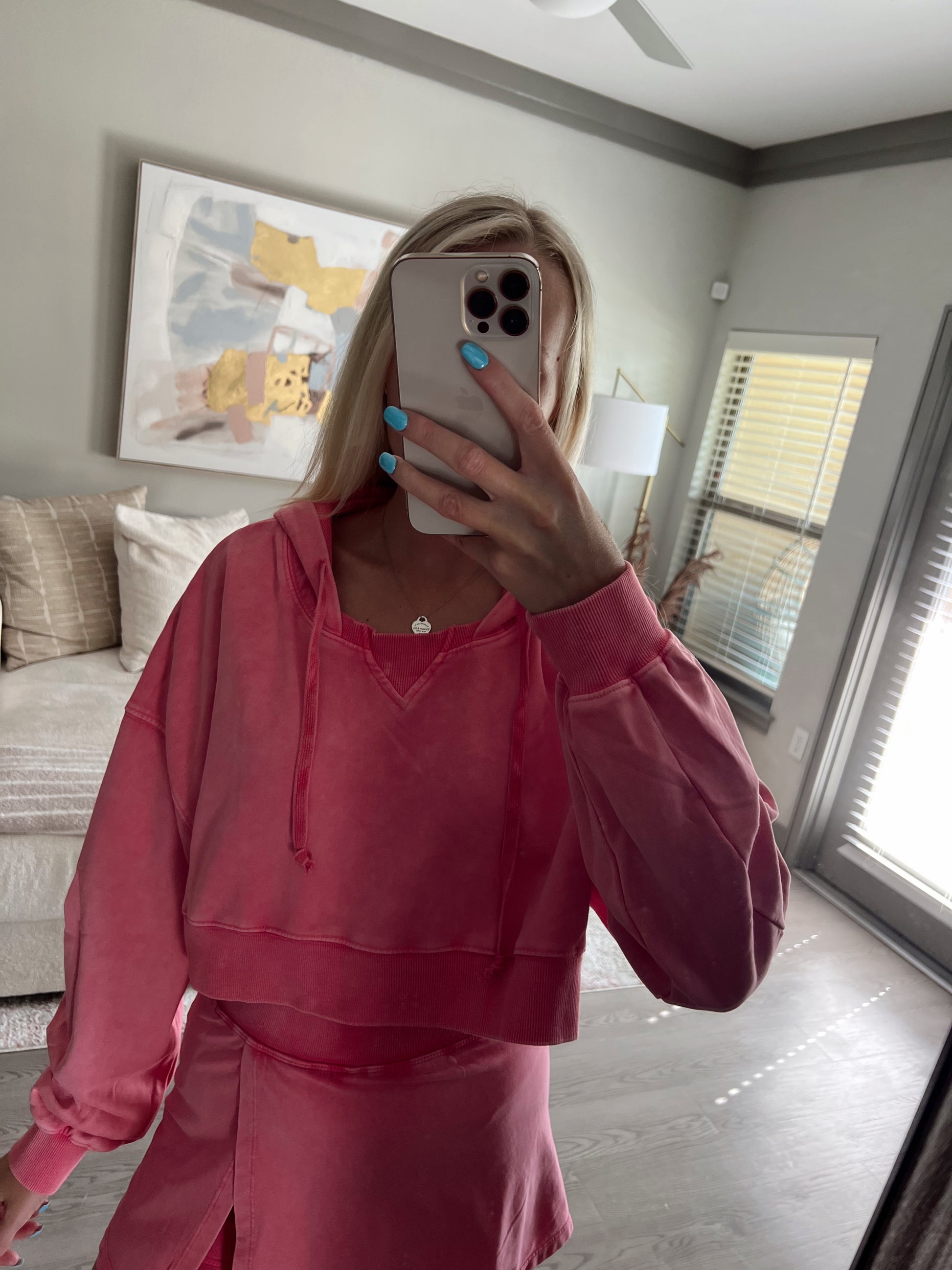 Details: Small scoop neck, cropped fit, adjustable drawstrings